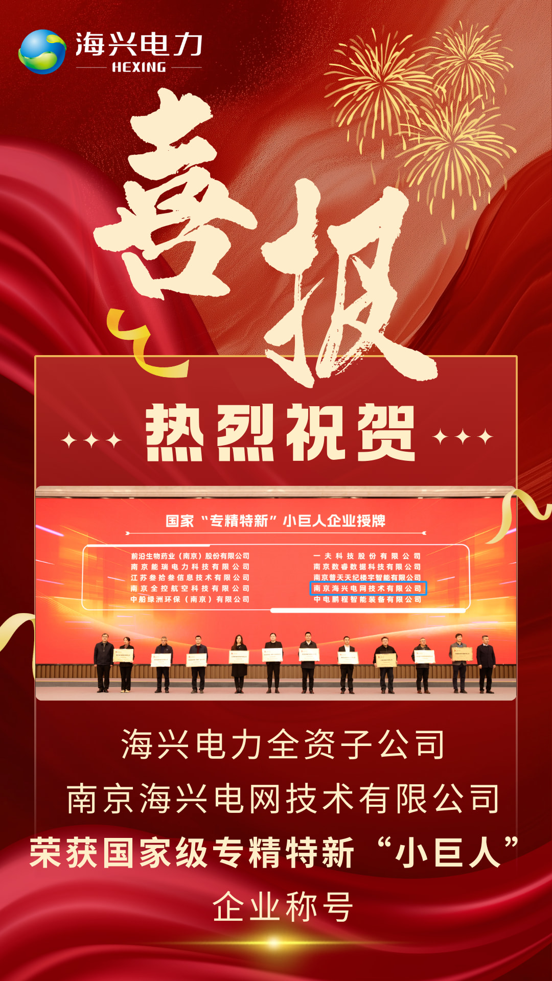 喜报 | 海兴电力全资子公司南京海兴电网技术有限公司荣获国家级专精特新“小巨人”企业称号