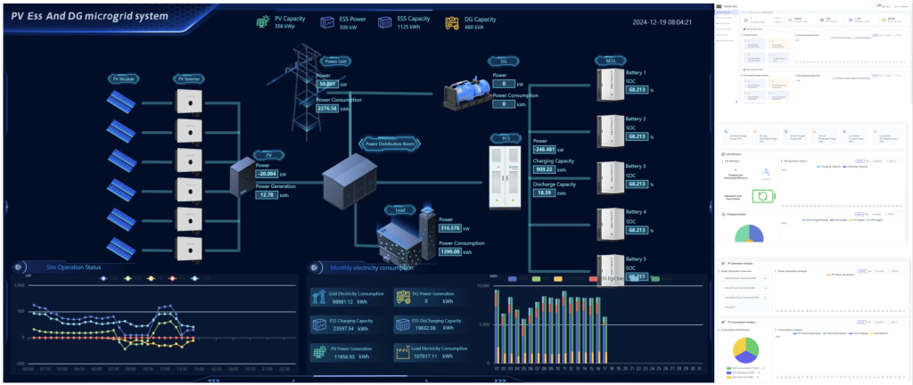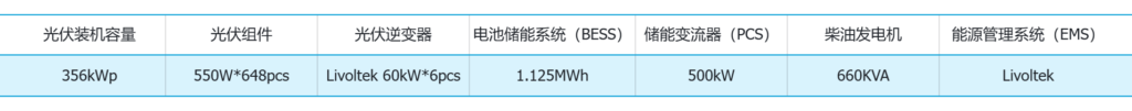 项目规模:356kWp光伏,500kW/1.125MWh储能,660kVA柴发(客户侧)
