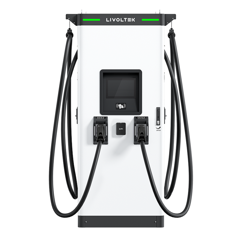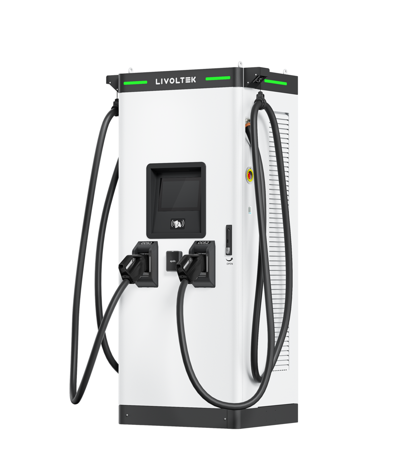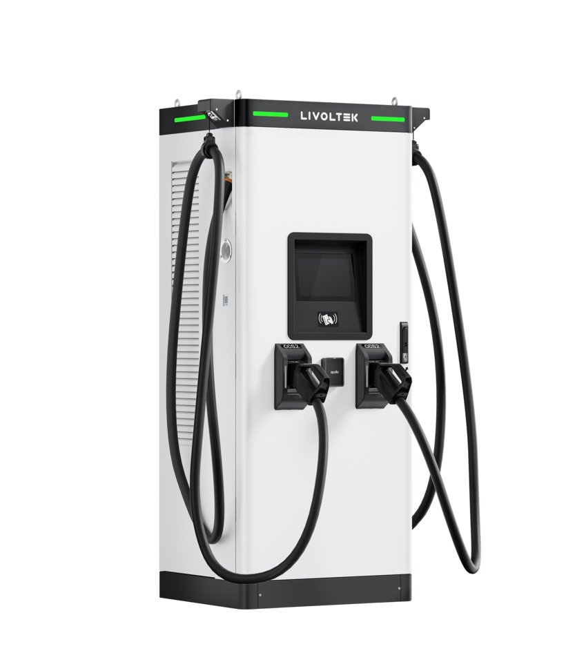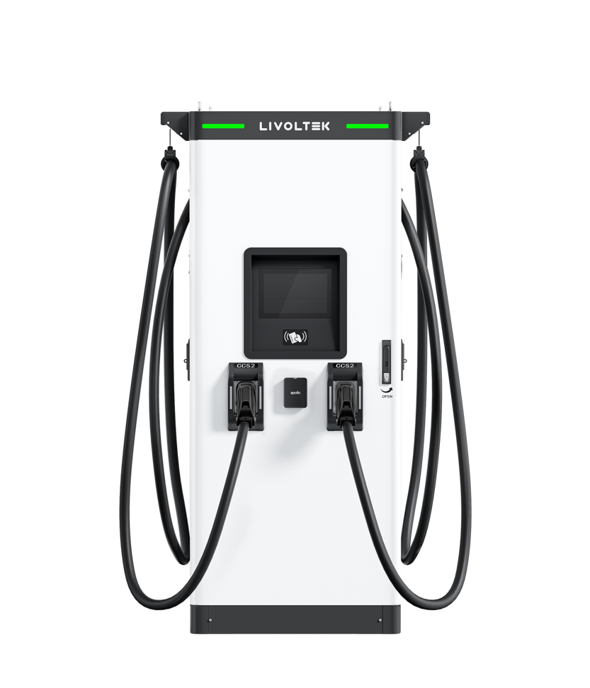 LIVOLTEK独立快充桩配备双直流输出通道,可选配CCS2插头,并集成智能线缆管理系统。
