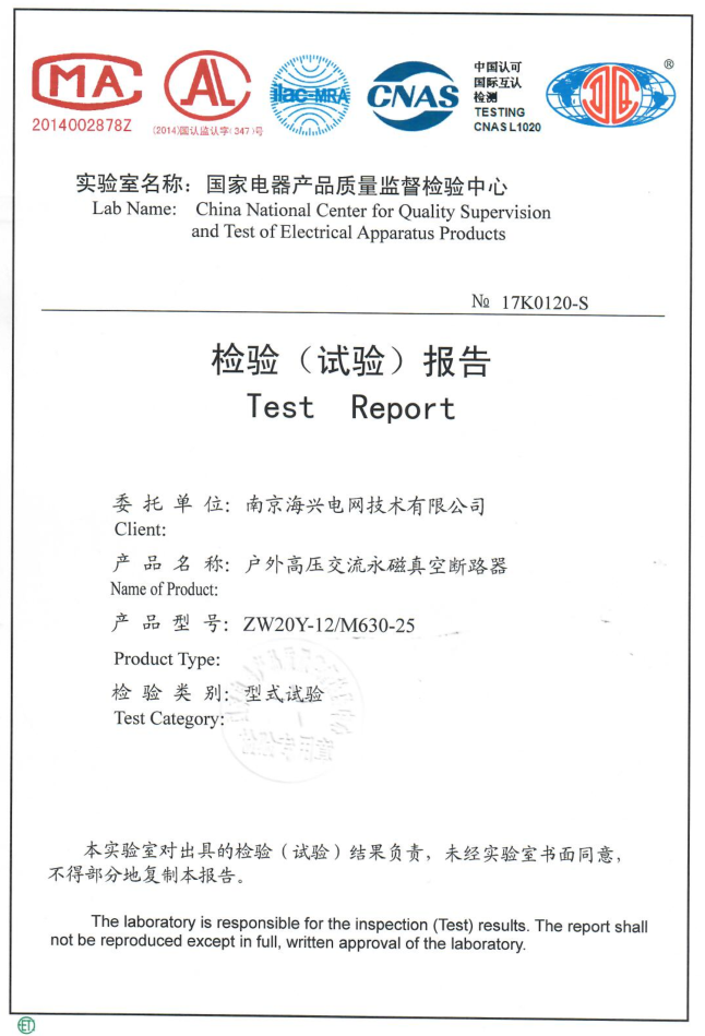 | 1分钟工频耐受电压(断口) | 48 kV |